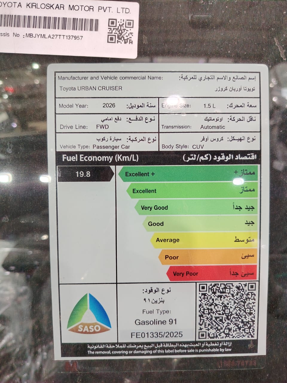 • كفاءة استهلاك الوقود: 19.8 كم/لتر