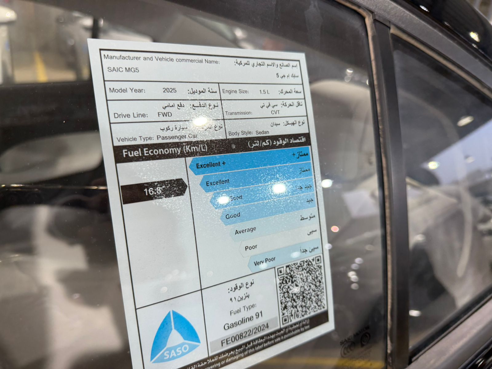 ام جي 5 ستاندر اسود 2025 | MG 5 2025 مواصفات السيارة محرك 1500 سي سي4 سلندرقير اوتوماتيك CVTدفع اماميجنوط مقاس 16 انششبك كروماشارات مرايا ليد خلفيحساسات خلفيةتشغيل ذكيتشغيل بصمهكشاف ضباب خلفيشاشة كار ابل بلاي اندرويد اوتوريموتمقاعد قماشزجاج كهربائيبلوتوثمثبت سرعةعداد رحلاتمنفذ يو اس بيمنفذ طاقةمكيف خلفيدخول ذكيعدد حزام 5 Facebook-f Twitter Instagram Youtube Snapchat